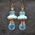 Beautiful Lampwork Glass beads with turquoise swirls. Sandwiched between recycled glass beads on top and glass drops below both in gorgeous turquoise color.